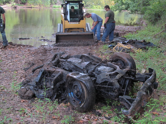 Thank you for all your hard work in cleaning up the NB. I thought that my fishing club was doing good when we filled a pick-up truck load of water bottles, beer cans, bait containers, etc from around Mercer County Lake. But you sure do pick up the big stuff. How do you manage to get the heavy stuff out of the water...do you have a small backhoe or something? Denny |