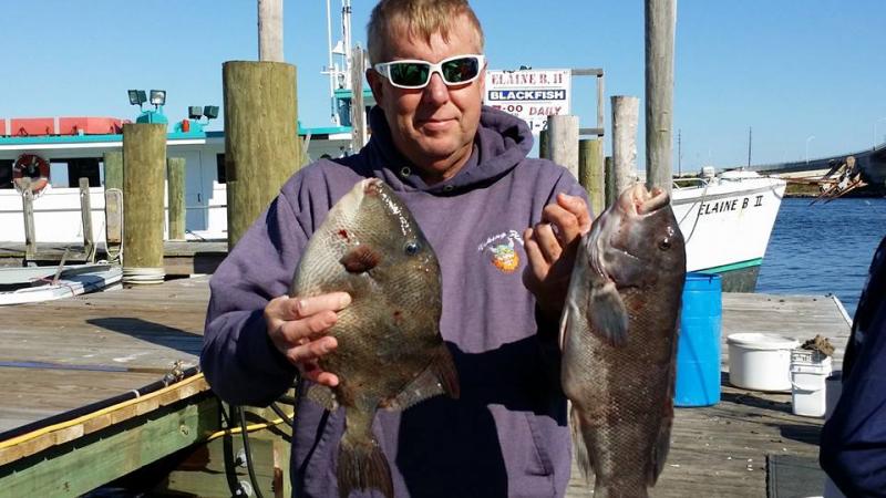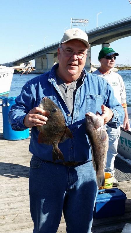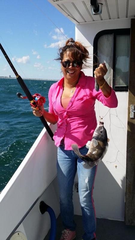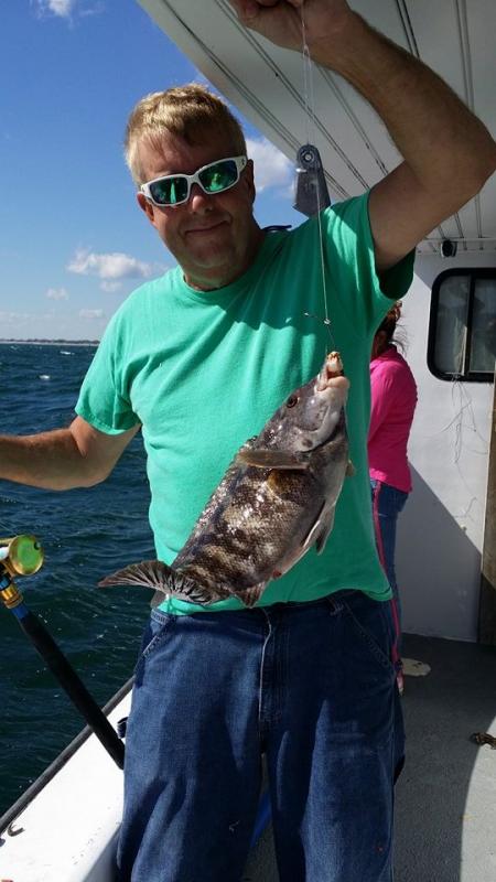 Last sunday we had a great day of bottom fishing. Some big porgies , a few triggers, out of season sea bass then we finished the day with a great tog bite. Monday the south wind really screwed us. We could not get to where we wanted fish. Tough day with not enough porgies. Wednesday we started with a few porgies & triggers. We finished the day on a small tog wreck. That was the best tog chew i have seen in a long time. Thursday we were hoping for a repeat but only picked at them. Friday we had a few triggers, tog , & porgies. Today we got our morning in with some stripers & blues. Chad