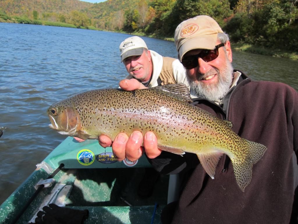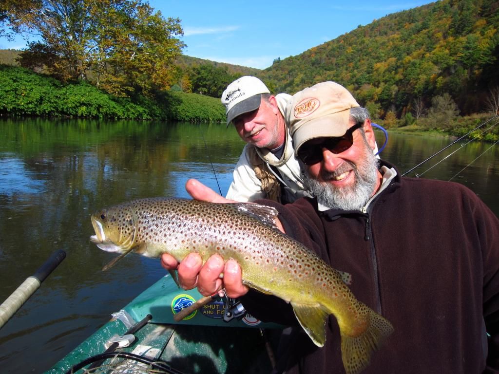 DAY 2: Breakfast at the Circle E diner. We looked at how low the East Branch was and decided not to go up onto the Beaverkill, but instead to work our way down from Hancock NY where we were staying. Fished the East Branch near Fireman's Field for a bit, super low and gin clear, no love there. Drove to the other side of town to the West Branch and it was raging and very off color due to the high release rates from the reservoir, no love there. Headed down along the main stem of the Delaware river on the Pa. side popping in at a few places, mostly boat ramps. Stopped and talked to a trio of fly fishermen getting ready to launch their drift boat for the day. They had everything imaginable in their boat from all the latest and greatest gadgets in fly fishing to hand held GPS and maps. I told the 3 older white men that we had a good day yesterday on this stretch fishing for trout and I went on to tell them what we were using. After hearing this, one of the men turned to me and told me to GROW UP ! Wow, I thought to myself. Such is the elitist attitude of the fly fishermen up there. Anyway we drove further down along the river and came out at Callicoon where Wilson and I had a few good hours of fishing. I got a solid brown and rainbow there along with a smaller trout and a smallmouth. I couldn't help but to keep thinking about "growing up" as I reeled in those few big trout in Callicoon on my 5' 6" ultralight rod and reel with 4 pound test line. 2 photos of Long Eddy and what the guide uses and a photo of the East Branch in Hancock NY showing how low the river was. Last edited by AndyS; 10-12-2014 at 05:23 PM.. |