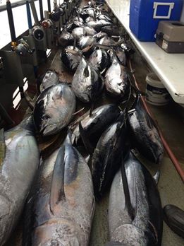 Way to go! Now, that is a good catch. Very few small tuna- most look large! Nice job capt and guys who fished. Wondering if any were jigged, live bait, etc.