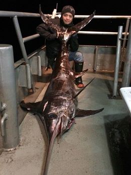 Most of the fish were caught on sardines and butterfish. Some were caught on jigs. One angler did catch hos limit on a jig. The sword was caught on a live squid.