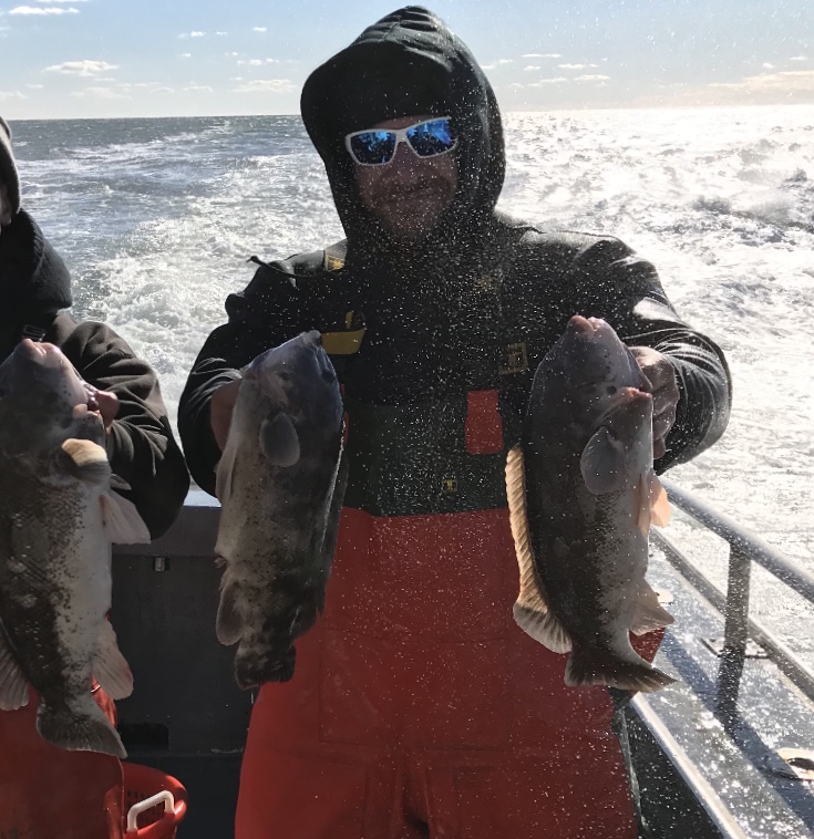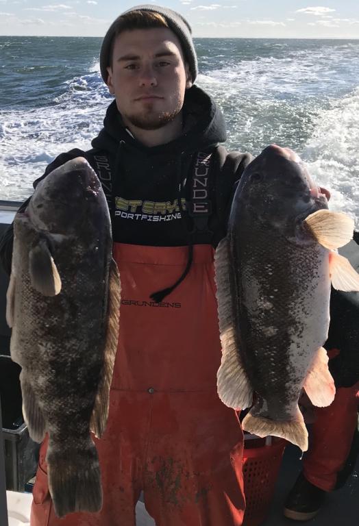 Today aboard the Down Deep Bull we ran our 1st 6am Jumbo Blackfish trip with a great bunch of guys. Blackfishing did not disappoint as the action was excellent with plenty of quality keepers filling the cooler with many going back to fight another day. Had a good chew going and a nice day of fishing all around the boat. Book now and get right on em! Book now and fish in comfort like a gentleman. Thanks everyone for sailing with us and all others who continue to book all their Fall 2018 Jumbo Striped Bass, Seabass & Tog trips going forward at a rapid pace. Don’t miss the next open boat trips - SATURDAY DEC. 8 - 6 AM JUMBO BLACKFISH - FEW SPOTS REMAIN DON'T FORGET TO ASK OUR CREWS FOR YOUR TICKET TO WIN FREE TRIPS ABOARD BOTH BOATS. JUST OTHER WAYS WE SHOW OUR THANKS BESIDES SAYING IT ALL BAIT, BASIC TACKLE, ICE, RODS, KEURIG COFFEE & BOTTLED WATER PROVIDED. Come out, load up, book now. Don't delay, BOOK STRIPERS, SEABASS & TOG CHARTERS NOW! Here’s a few