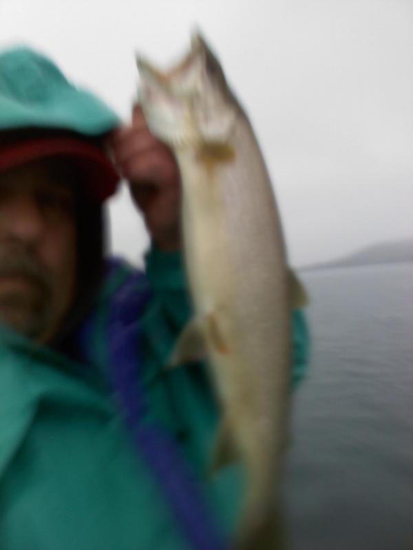 Decided last minute today to make a run and try for some trout. I knew it was going to rain but winds were light to nothing so had to go, not many days with no wind in the winter. Well I got up to the lake about 11:00am and as I am launching the DECK ARM Dude is coming out. A big thanks to him as he put me on the fish pretty quickly and not too far from the launch. Fished stickbaits and spoons all day NO BAIT!!! BELIEVE it or not!!!! I caught my first fish on a 2 inch jointed firetiger shad rap about 175-200 ft back on the board about a half hour in. Small maybe 14/15 inches but was happy just to catch something today! I kept at it for a while and landed 2 more before I finally called a day. They were both about 18/20 inches, measured the first estimated the second. All three were released unharmed. All three on the shad rap as they didn't want anything else I threw. Also gave a weak attempt at jigging them because I had some really nice marks today but I have no patience and if I don't catch one in like five jigs I quit jigging. Surface temp was 45 degrees. Packed it in about 3:00pm soking wet and cold but happy with the outcome of the day!!!! Here's a pic or two first one came out clear the second not so much. Oh well more concerned about my phone than the pics so sorry.