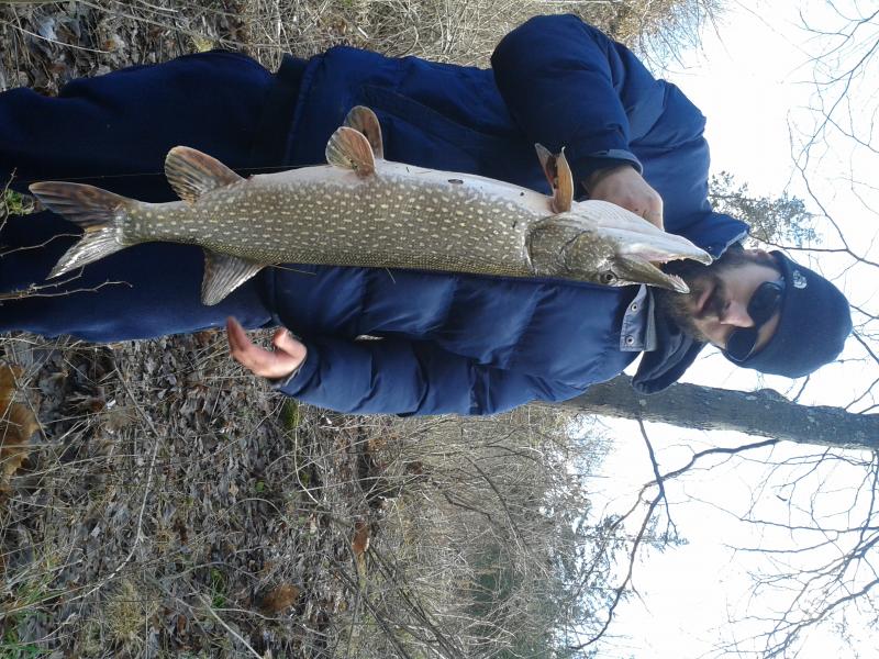 Pike was a ruff 34in flop measurement..brooke off 1 same size must of had a frey cuz after mother fn up n dwn.. pop goes my bobber..tied on a spinner.. finally got a shot in range..bang 2try snagged the line..fun starts after a long gentle battle I get em in.. sumhow fish got wrapped not gut hooked..very good!! Grabbed bobber then his tail..slipped out n took off snapped the 6lb n assume will unwrapp itself. .so I touched em n snagged my line to get em in..Counts..4 crappies all slabz..1 dink 1 4lbish LG mouth...n a Big Ol Perch 12in slob..bet be pushin state record soon!!!! Awsome day..so ahh how was work..