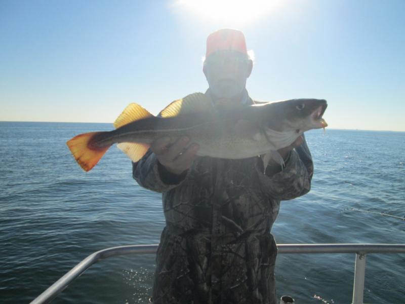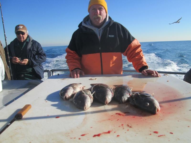 Started the day off shore where we found some nice tog and a few cod but were unable to stay with the impossible anchoring conditions. At the end of the day when the wind flopped and the current ran the bite turned on. Barry Searcher from Allentown took the pool with a 10 pound cod and William was a close second with another cod.