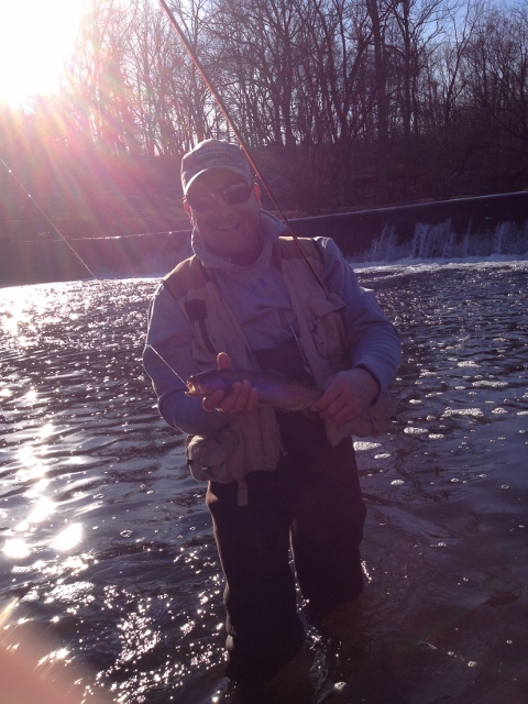 Fishing on my 50th birthday. What better way to celebrate the big 5 0 than to be on the river with my boys! I was able to land one rainbow and missed 2. Fluorescent orange egg pattern. Boys couldn't get the skunk off