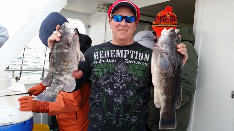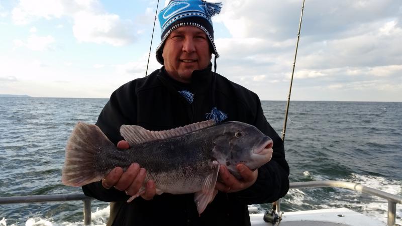 Nice day out with an allstar cast,,,caught some nice fish today including the new seasonal pool leader that Pauly nailed that weighed in at 12.8lbs..Some other fish that weighed in at around 11lbs.that one of them was well enough to let go,,also had some others up around 8-10lbs..We managed to just pick at the fish,,,some were dialed in and caught some fish,,some were not but I would not complain at the spread of nicer fish scattered around the boat...Check out some pics,,,also had another Codfish today and some ling...All deeper water and from now on we are targeting the deeper water drops to go after all BIG BLACKFISH....So bring your heavier lead.....Sailing everyday including New Years Day at our normal hours.Pauly is in the first pics with the money fish,,Big Pool worth 2900 bucks..The daily took over 500 today...See ya for coffee..