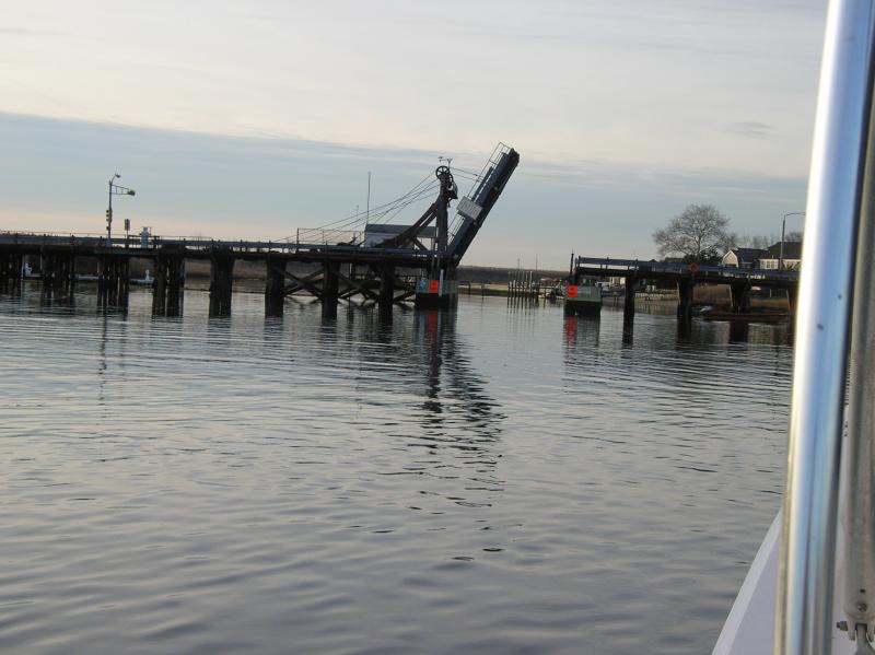 They are working on the bridge but it was operational to boat traffic up til Jan 1. Now you have to give them 24 hour notice if you need to get out between 4 PM and 8:30 AM otherwise the bridge is down. Luckily the guy came down by 8 to lift the bridge. Regular road traffic is still closed