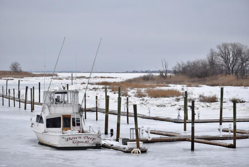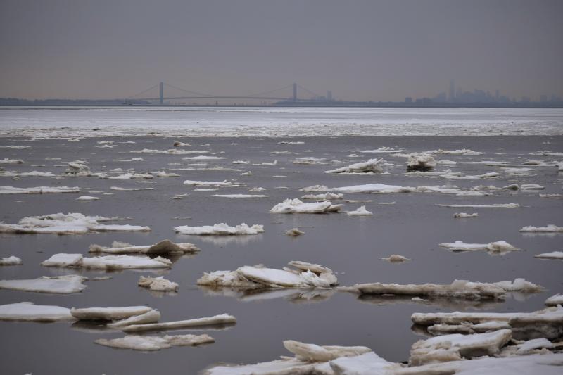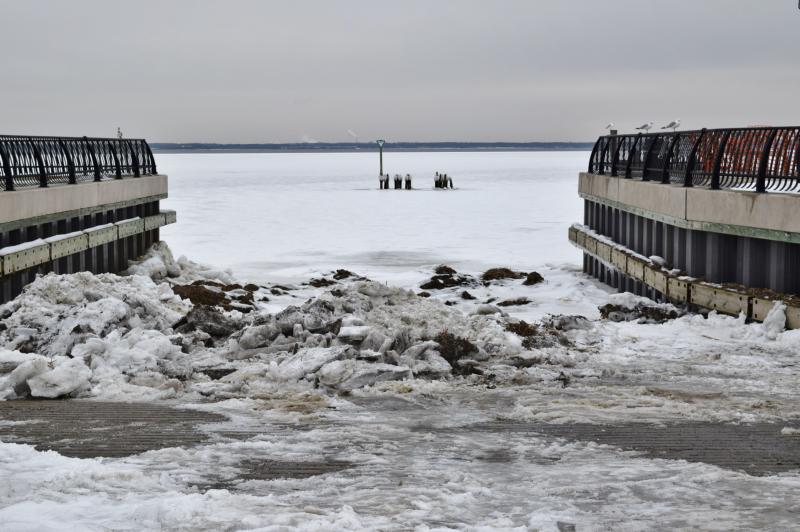 Keyport is still frozen. The Ice on the ramp was just scraped and pushed toward the water with a front end loader. Until the harbor ice breaks up, the ramp will stay like it is. Atlantic Highlands is still frozen and the PB's are still iced in. Capt. George looked like he was doing some housekeeping on the bridge of the Angler. The Sea Streak ferries were operational but the bay has lots of ice. The ice in the Union Beach area has moved out and might be part of another ice pack toward SH Bay. There was one car in the dirt/mud lot at Union Beach. A fisherman? I don't know. There were some changes in the ice, but it's still there. The full moon tides and the predicted rain might change things quickly but there's still lots of ice upstream of the GSP on the Raritan. The Saltwater Show is coming up. Maybe that will take care of all the Jones's.