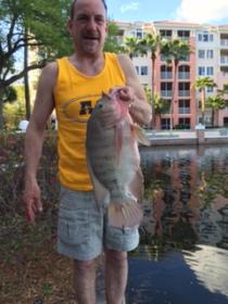 I was in the Orlando area last week for vacation. Stayed at a Marriot property with a nice lake that hardly anyone fishes. Nice largemouth fishing and there were tilapia spawning all over the place. Tilapia are plankton eaters but I found they are somewhat protective of their nests and hit our swim baits once in a while. We didn't target them but caught some real nice ones anyway. Lots of fish but only snapped a couple of pictures. Had a nice nocturnal visitor (armadillo) and saw some small gators and one about 8' long but couldn't get any good picture. All in all a great vacation with plenty of fish.