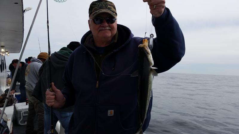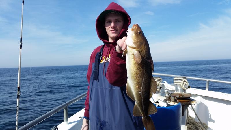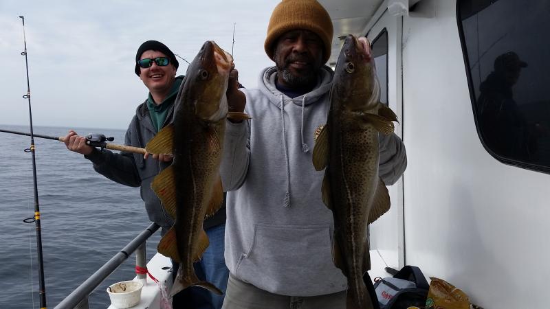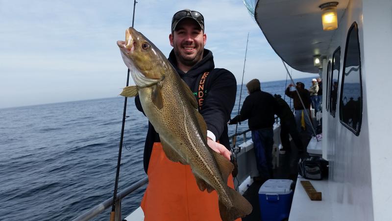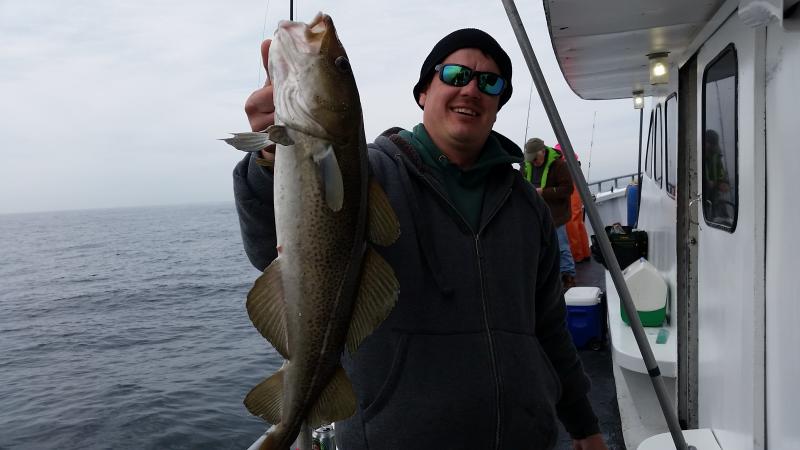 3-11-15 Very nice out there today,,,good to see some faces we have not seen in a while,,,great group of people on the boat today,,,,We picked away at some fish ,,,some people caught some nice fish,,High hook had three keeper codfish,,,some others had one keeper or maybe some chuckers,,,,few small pollocks,,,more ling than I have seen lately,,,Willy actually had three ling to go home with,,few others scattered around the boat....few sea ravens and eels etc...Not a bad day,,cant say everyone caught fish but overall it was probably the best life I have seen this winter....Drew nailed the pool with his nice codfish,,, Shrimp....Yes Shrimp,,,raw,,,, is what worked best today with the Codfish....Four nice keepers were taken on them.....as for tomorrow I dont like the winds,,up to 29 kts.gusting with wind guru so I am gonna cancel tomorrow and get some work done to the boat,,,,Friday is the way to go,,light winds so see you Friday morning....check out some pics...