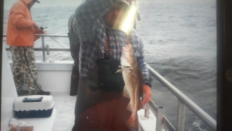 What a shame not many people came down this morning to get in on the last day of togging. A very light crowd today enjoyed good fishing and the weather held out for us. Everyone had their limit of togs and along with them a half dozen nice cod and three fat flounder made it in the box for the guys.