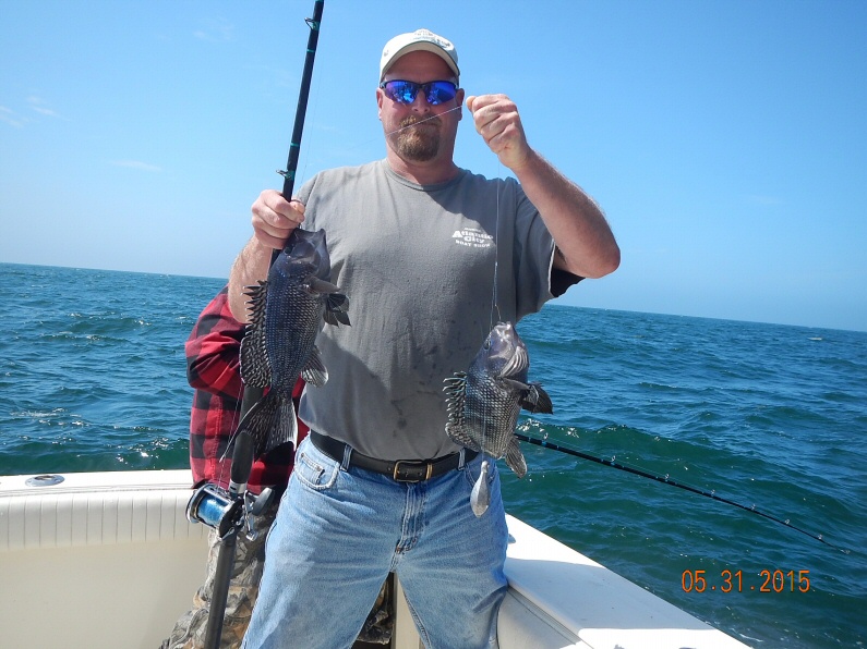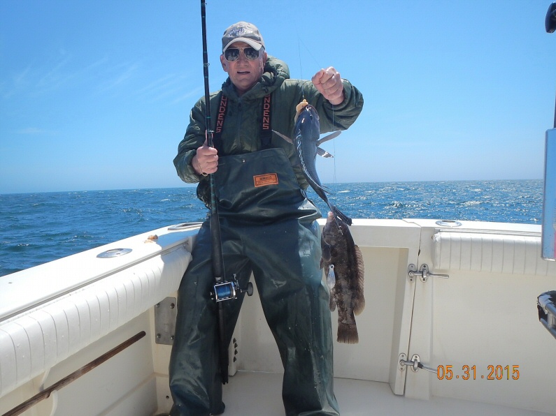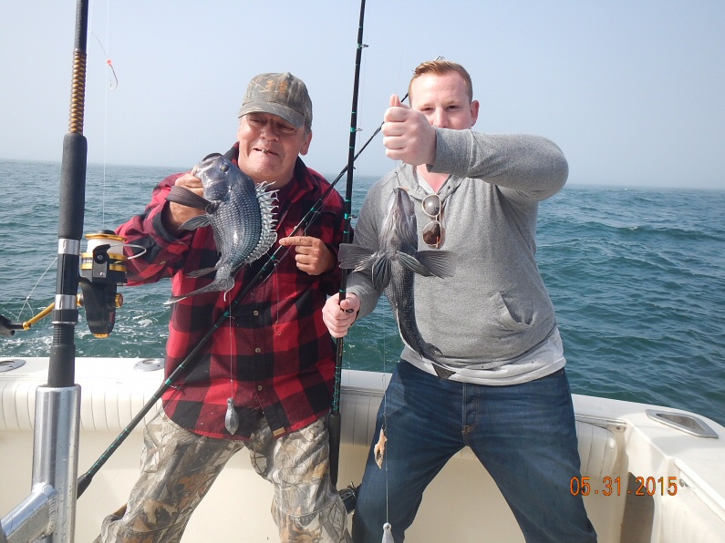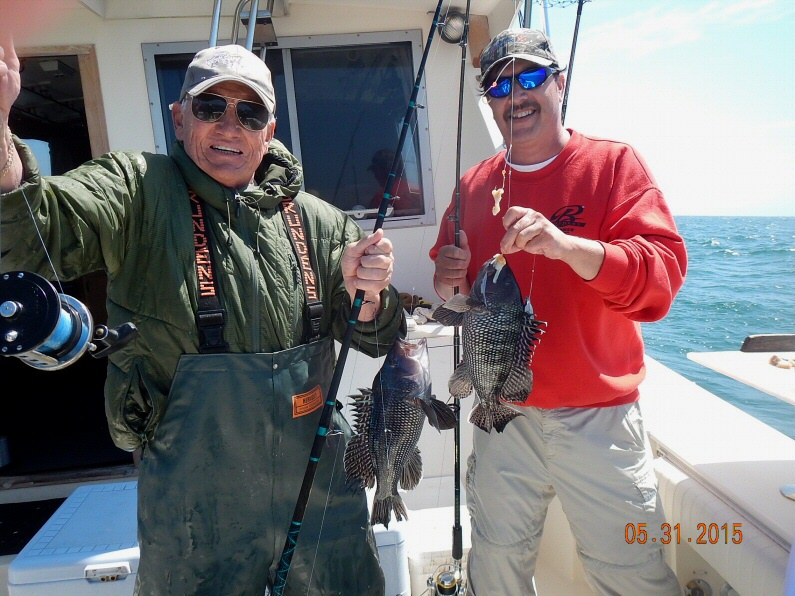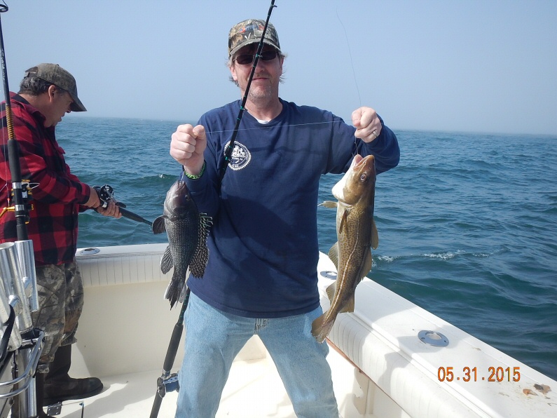 The Bill Zuchero charter joined Capt. Paul for a day of Seabass fishing. Along with Bill we had Jon, Ron, Chris, Scott & Walt. Paul wanted to beat the forecasted south wind so he headed right back to the area where he fished yesterday. It was no surprise when we had a slow bite in the AM but by mid morning we were into a nice pick of Seabass, Cod & Ling. The crew worked thru the short Seabass and put together a nice catch of 76 Seabass, 5 Cod and 6 Ling. 6 short Cod were released along with 7 Ling. By 2pm the the hard south wind was really cranking offshore and conditions were deteriorating so we called it a day. It was good fishing with Bill's crew. They will be back for 2 or 3 more charters this year.