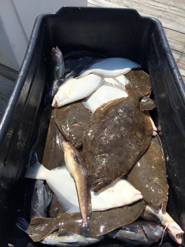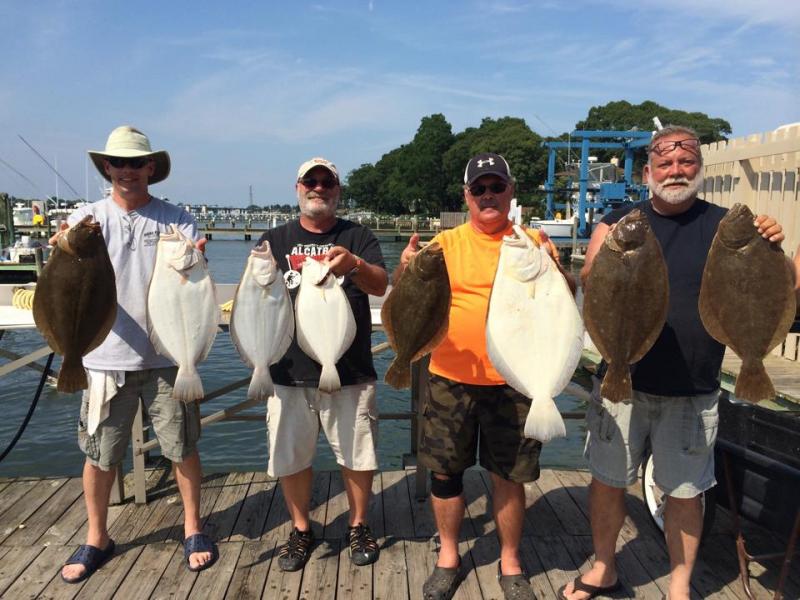 Ran our first open fluke marathon of the summer with regulars Flukemaster Larry, Fred, Bill and Mike. Didn't fill those last 2 spots so sailed with 4 guys.