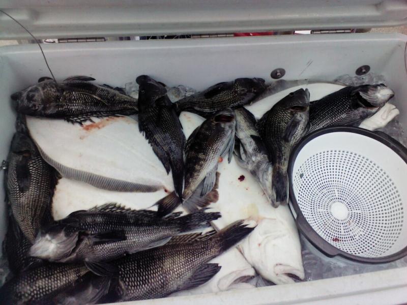 Today we ran a 6am trip for Steve and friends. The gang picked away all day at a nice bunch of Fluke to 6.5 lbs and then topped it off with another bunch of Seabass to 4 lbs. Big smiles and big bags of filets. Thanks guys for coming aboard again, it was a real good day