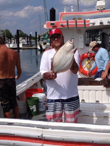 Friday July 17 we had Kevin group out for fluke .. Tough day after the north east blow yesterday .. We had a left over heave that made conditions a bit tough.. How ever the fish we got were nice .. The big fish today was 9 lbs. ... Thought we had our first DD of season .. He's still down there. So let's go get him ...
