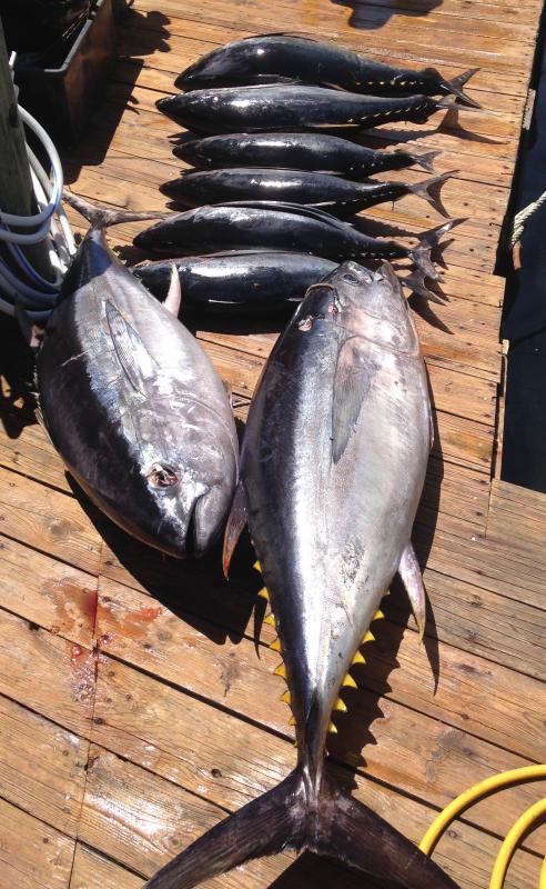 Well I will make it quick and easy we had great action on troll an chunk with lft yft and couple big eye in 200+ lb range went home early with arms and backs hearting