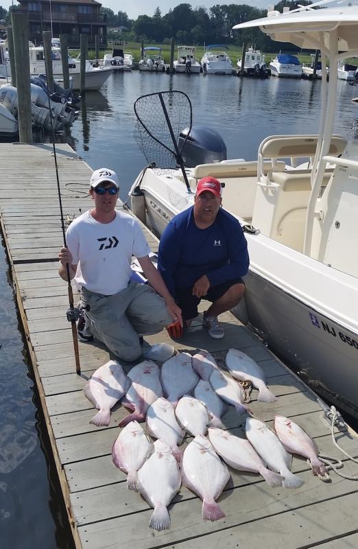 I landed a 9lber, and then a 7lber a short time later. Rob got a nice 5lber, and Rick was putting fish in the box. My son, who is Autistic, but a great fisherman, got his limit in his only his second time fluke fishing! We all fished hard, and ended up with 15 keepers. I am happy my son outfished me, and he did a great job. Thanks Rick for putting us on the fish ! Had a great time as usual. Rich B |