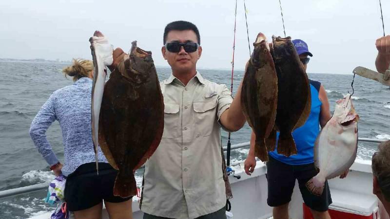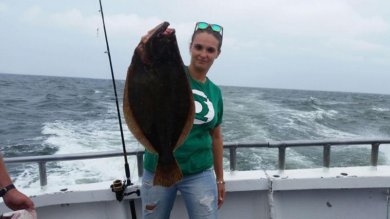 9-4-15 No lack of drift today,,if anything to fast..Still we managed to get some nice fish,,Sammy was high hook with a limit of fluke,and Joey won the pool with a nice 5lb.fish,,he had two total..,,Some only had shorts and some other scattered catches around the boat but it was not easy with seas running 3-4ft..and a quick drift...Still a nice day out with some great people!!Check out some pics...tomorrow looks similar to today,,see ya in the morning...