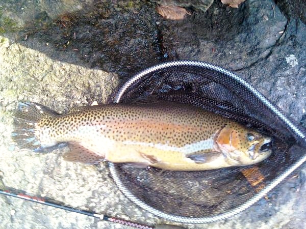 ![]() Other than the jacked up tail , that fish actually looks to be in gr8 shape...Pretty fizz!! ![]() Its not quite as mutantish as alot of the fall stockies i've seen and caught....