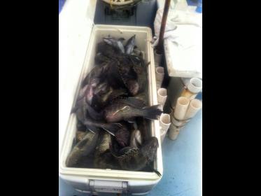 |  Golden Touch Sea bass limits I got a last minute call from JC to fill in for a charter that had a guy drop out. Fished locally and had drop and reel sea bass. John made a load of drops and worked his butt off for these fish but, at the end of the day we had a boat limit. Everyone went home with a big bag of fillets.