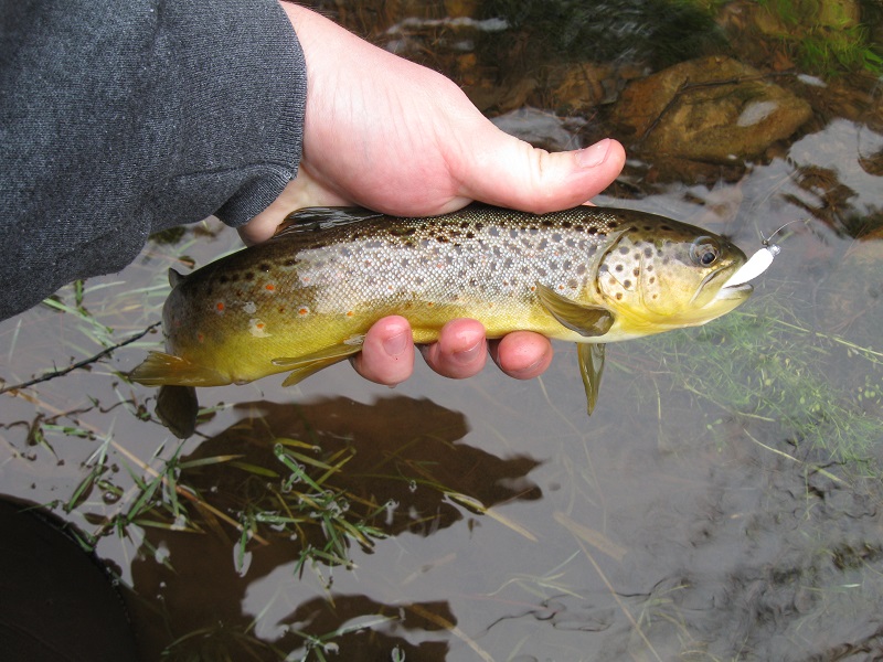 FYI, a small white grub on a jighead is my usual weapon of choice for wild browns, they really seem to crush it!