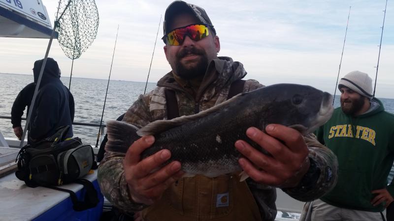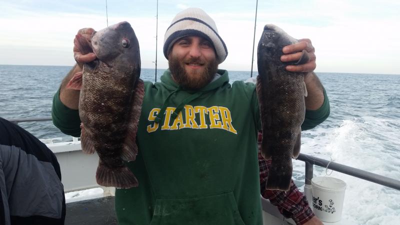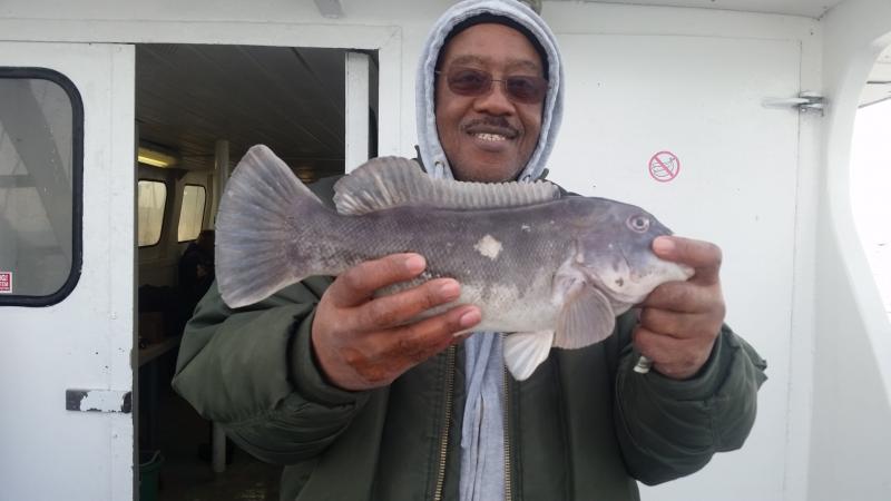 1-28-16 Much better bite today,,,we had fish coming as soon as we started today which was great compared to the action yesterday,,,,4-5 keepers on the first drop plus shorts showed us the bottom settled down alot...Made a couple of different drops in different depths again and still had good life on all of em...Not as good as before the storm,,,but high hook had a limit of blackfish,,few had 3 keepers,,,few 2,,and one,,,some did not catch but I was happy with what we had as a whole...pics..tomorrow is good,,as is the weekend..see ya then