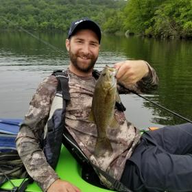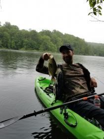 We stopped and fished a few shorelines and coves, but our main objective was to reach the island and fish all around it. The first hour was pretty dead with only sunnies nibbling at our baits. We were tossing 4’ Keitech swim impacts in light to dark silver with glitter. After starting to get annoyed with the smell of skunk, we switched to a pumpkinseed Keitech sexy impact. BOOM!! My buddy landed a fish and I joined with a double header on the first cast with pumpkin seed. My Personal Best Crappie to date. Maybe you boys have secret lakes where they get bigger, but these things were biggest ive seen with my two eyes. Ha! We picked off the occasional dink bass / pickerel or panfish on the way to the island. We arrived and entered the skinny side and started nailing pickerel and crappie. We reached the mouth and we caught a few nice Smallies. The bigger one I’m holding was 2.3lbs on the digital scale. I surely thought it was bigger by way it fought. For a second I thought it might have been one of them Hybrids they stocked. The action slowed down so we changed over to a Silvery Keitech swim impact with blue top and blue glitter. This seemed to get the bite going again. The sunnies there are very aggressive as we kept losing tails on baits and hooking some on. We had 1/0 and 3/0 hooks and these guys were still managing to get on. Crazy!! My Buddy also picked up with PB crappie on one of the feeder coves. On the way back we caught a few more as the rains started coming down. We called it quit by noon. Final count 11 fish me and my buddy taking the tie breaker at the end with another aggressive gill on a 4’ worm. What a great place the Rock is. That was only my second time there and only my first time really fishing it. With the exception of the cat fish and the Hybrids, I think we caught every species. LMB, Small Mouth Bass, Yellow Perch, Pickerel, Black Crappie, Bluegill, Pumpkinseed. |