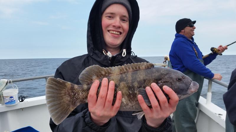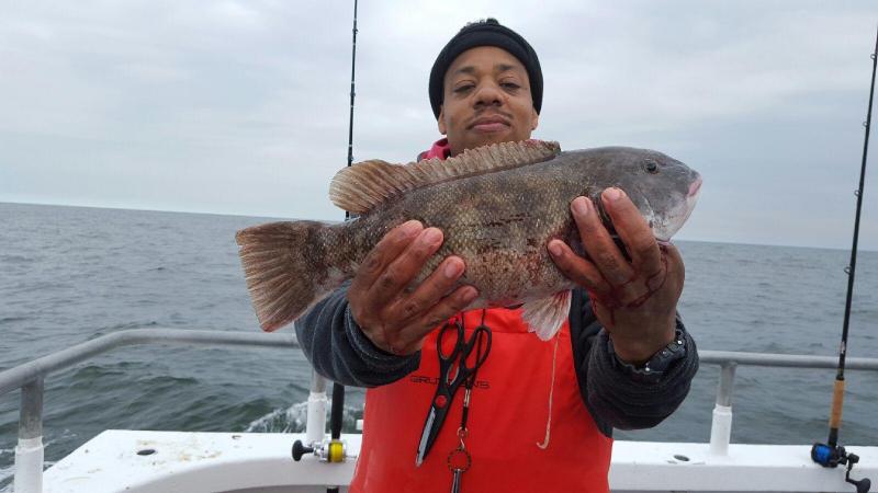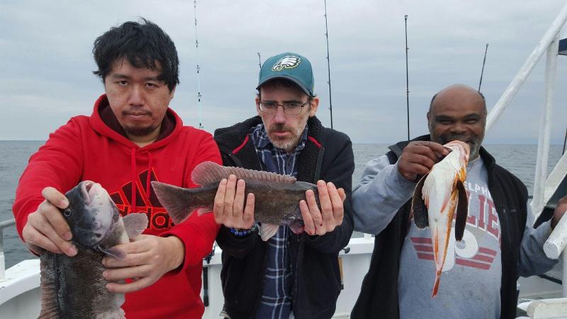 4-27-16 Gloomy start to the day but the ocean was nice,,,fishing was slow to start for the most part,,,,picked a few fish early,actually Nikki was limited out pretty quick but most were not getting any action..Stayed that way until afternoon when we had a pretty good bite going on on one side of the boat..everyone moved over to that side and we banged away at the fish..both shorts and keepers and it kinda saved the day....check out some pics...we are fishing tomorrow!!!see ya for coffee!!