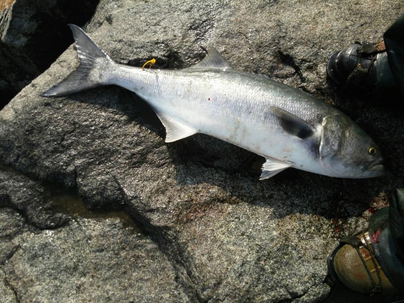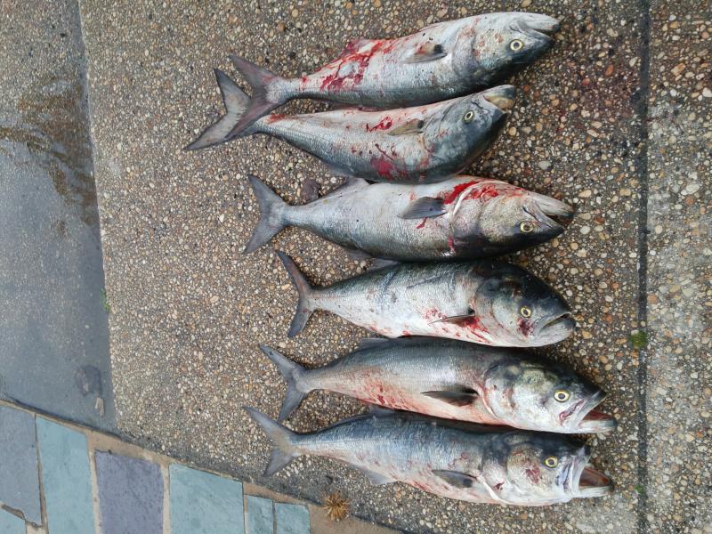Yesterday evening I made 22 casts into Manasquan Inlet with Hopkin's metals and landed 10 bluefish. Smallest was 9 lbs. Kept 6 and tagged and released 4. Had big blues on my line for my first 17 consecutive casts. They stole both of my Hopkin's rigs. It was an outstanding trip for a 69 year old jetty fisherman.