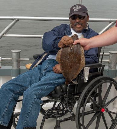 The Mi-Jo from Atlantic Highlands generously donated a charter trip for the second year in a row to patients from the Lyons’ VA hospital. This year’s trip was Wednesday June 29th. The weather and fishing were good and every one of the 20 or so veterans had a great time! As always Capt Mike, Dee and the crew treated everyone like royalty. Capt Mike moved around the bay trying many spots to find a good drift and hungry fluke. Everyone caught fish and we scraped together a dozen keepers for the day. The Stirling Elks lodge donated the tip for the crew.