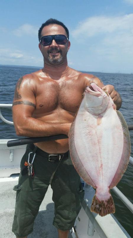 Hey gang, I had the boat out again today with John and Shane for my deckhands. They did another excellent job today taking care of the people. Great action day with shorts and keepers for another beautiful day in July. A lot of nice family people on the boat today. A woman from Scotland, with a rental rod, took today's pool. Although, we dropped a really nice doormat at the end of the day. Ray, son of Joe Falcon of the party boat Falcon had one that was double digits that spit the hook near the top. It looks like another nice day for tomorrow for the Thurs. regulars fishing the port bow. Capt. Glenn will have the helm tomorrow with the boys. Here's a few pics from today.