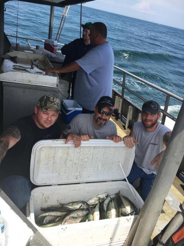 Friday report Excellent Fishing Today! We had very good fishing today. Anglers caught limits of bluefish and plenty of mackerel. We were chumming and caught the fish on jigs and bait. Most of the bluefish were caught on jigs. It looks good for the rest of this weekend. The current fishing we are experiencing is great for novices and children. Everyone is able to catch fish and it was actions throughout the day. The pool winner was: Dan Stivers from Wilmington DE with a 3.5lb mackerel. The big Jamaica is sailing at 7:30 a.m. every day this week for Bluefish. The big Jamaica will sail at night for Blue Fish on Friday and Saturday nights at 7:30 p.m. Afternoon Family fun trips for fluke and sea bass will sail Sunday through Wednesday from 4:30 p.m. till 8:30. There is plenty of space available for the Sunday 4:30 p.m. trip. Call the office for reservations. Thursday nights there will be a fishing and fireworks trip leaving 5 p.m. returning by 10 p.m. For further information call 732-528-5014