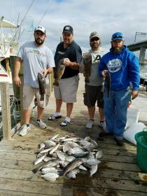Had Mike and the West Point guys on board today. Porgy fishing was excellent this morning. Anchored up and caught the porgies til they had enough. Made a move to look for some blackfish and it paid off...