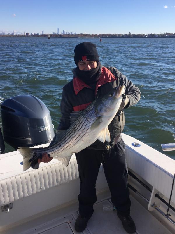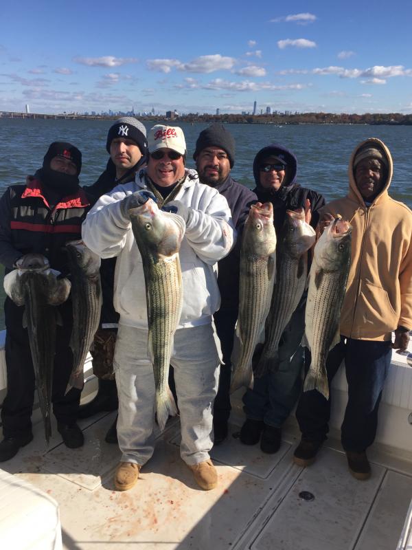 Time Striper fishermen Humberto, Luis, and Barnett. Looked around for a while and found acres of bunker Snag and dropped and livelined their Limit, congrats to the Guys on their first stripers!