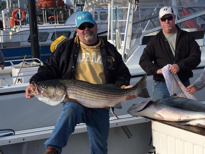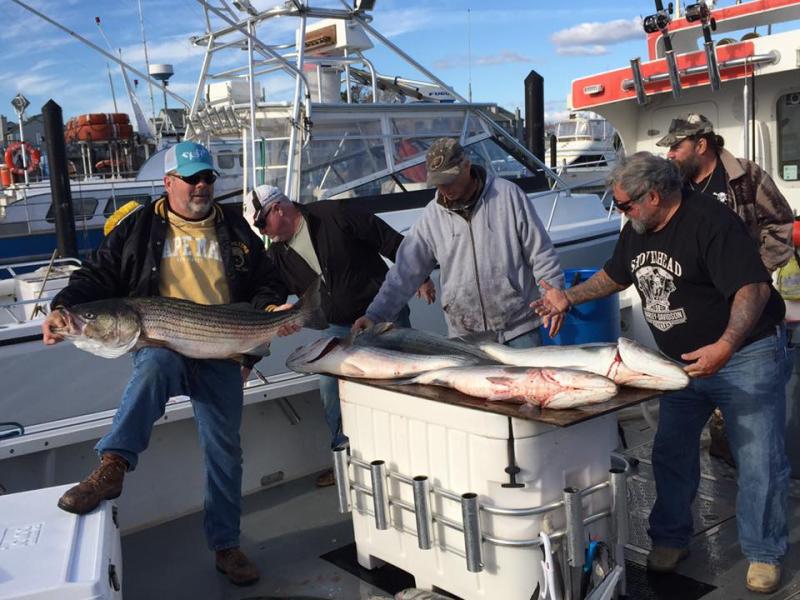 10/30 The last few days have been on fire with striped bass ... We had a bottom fishing trip Saturday morning for sea bass ... We picked away at Seabass and porgies. It would of been a great day but the dogfish were out in force ... We moved around from the 70-95 ft drops n it never got any better .... So we decided to go inshore for blackfish ... It was a very slow bite.. We had a striped bass trip set for Saturday afternoon but as we finished up our morning trip we got a line stuck in our prop ... Thanks to captain Scott of the Xtc he took our afternoon trip out and they clobbered the striped bass getting their limit of unders and a few overs .... Unfortunately we had to cancel our trip today to have a diver go down and get us all cleaned up.. The bass ate both this Am and again this afternoon ... As we knew this new moon put the bass on the move and on the bite .... We are all cleaned up and good to go catch some bass