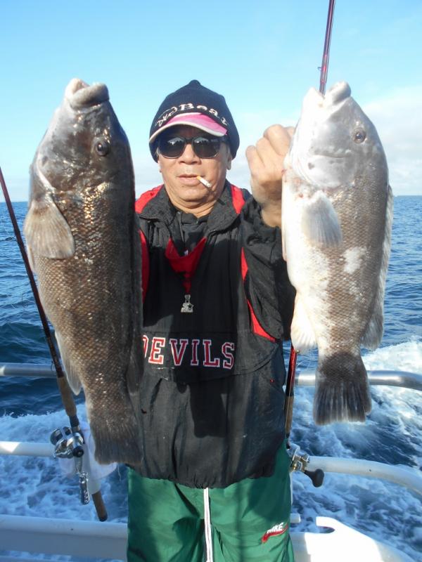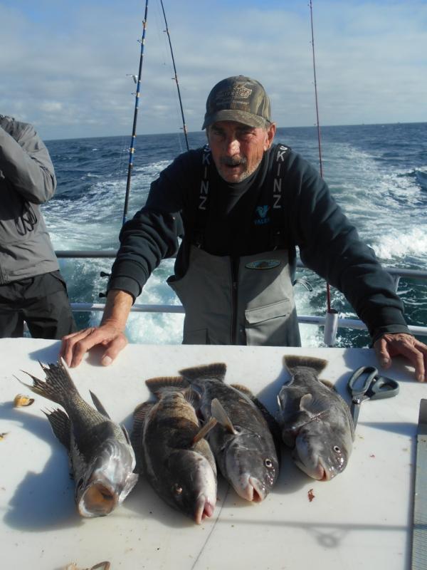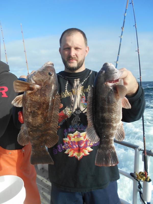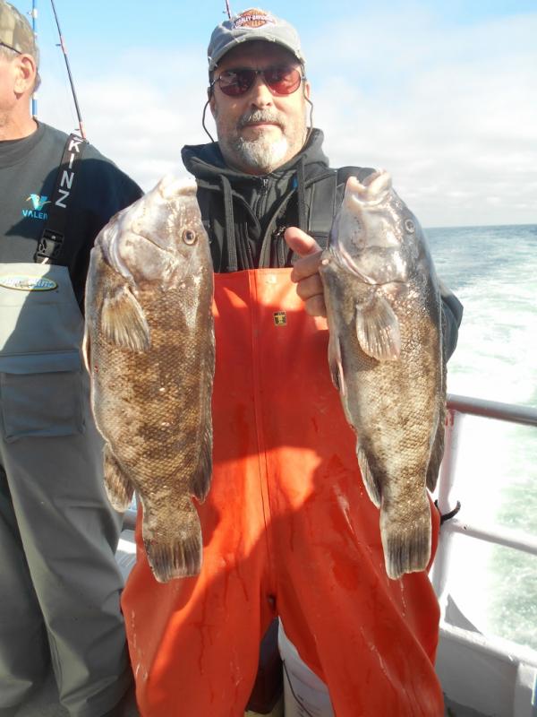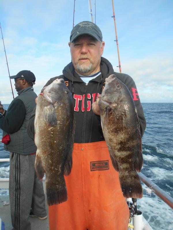 We knew Saturday would be our only day out with the high winds forecast and the weather was perfect for a good gang. The fishing was slow with the starboard side getting all the bites on every drop except the last one. Dan Pham from Dumont won a nice pool with a tog around 7 pounds. We saw some sea bass but no dogs which leads me to believe (as the water temperature gauge showed) that the warmer water turned off the bite.