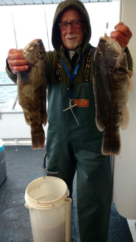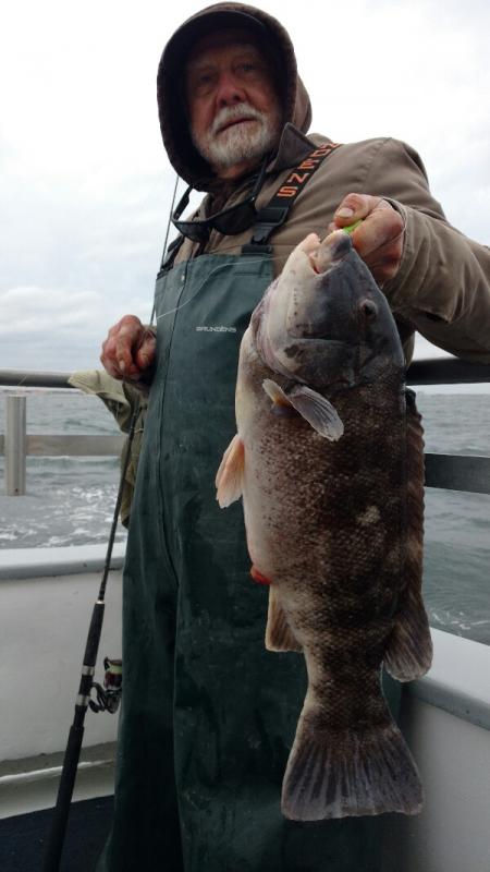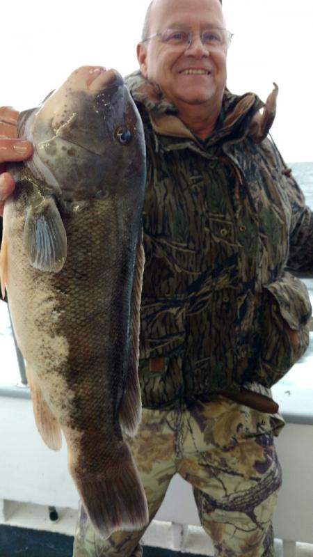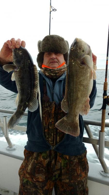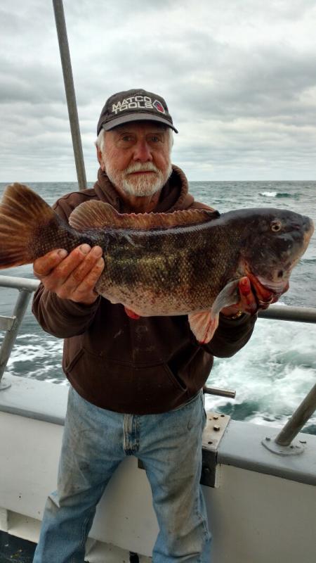Excellent fishing today guys . They had the feed bag on to say the least. We fished in 38' of water and it was on all-day. Most guys had their limits, and a couple guys fell just short. Ed was our pool winner today with a nice 8lb. 3oz. Blackfish. As always a good time with good people. Thank you everyone for fishing with us today. Tomorrow's weather is not good, so we will not be shaping up. See you Thursday. 7:30AM -4:00PM everyday.