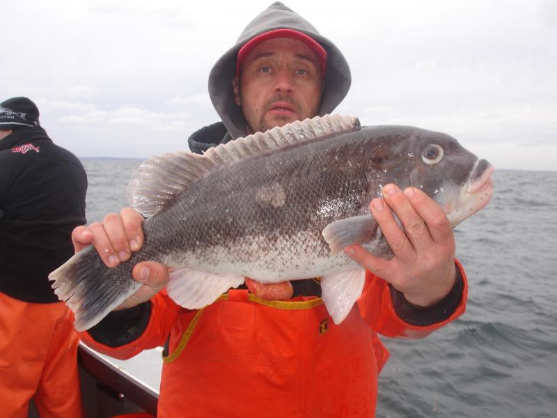 Today we ran our open boat Tog trip and the fishing was picky, hit four drops for the day with just some fish on each drop. We hit pieces from 60 to 90 ft in different areas and did not matter. On the last drop at least the size of the fish were quality. Danny was HH with his limit of six keepers and a few other guys with four, overall to many drops for the amount of fish.