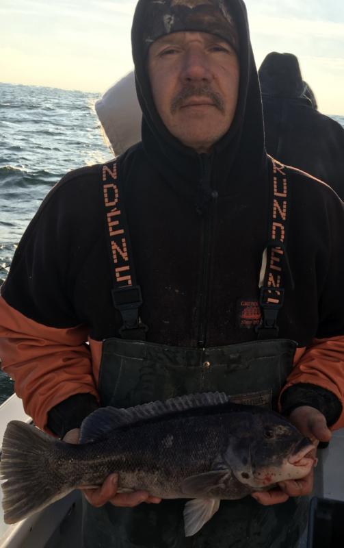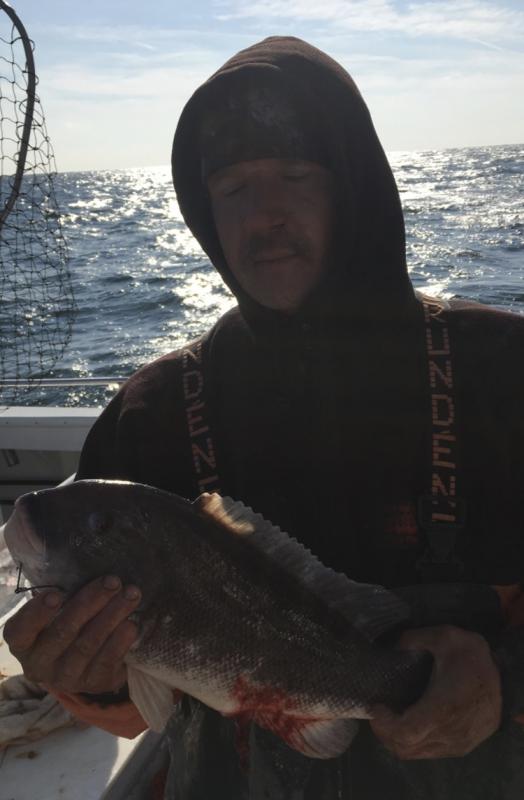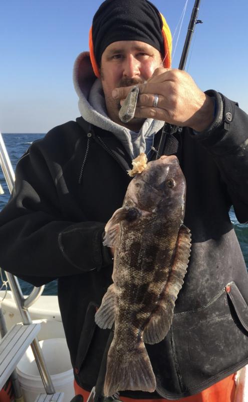 Wednesday, Capt. Rob & Joe ran another 6 am open boat Blackfish trip for a nice crowd of returning guys and a gal. Nothing big, but the guys put the keepers in the boat along with short action. HH had 7, a few at 6 and down from there. Nice plump fish to 5 lbs, and plenty of fillets for the happy crew. Thank you everyone for sailing with us and all others who continue booking all their fall & winter Jumbo Blackfish trips going forward into Jan. 2017 as well as the Spring 2017 Raritan Bay Striped Bass run. Don't miss the next open boat trips -