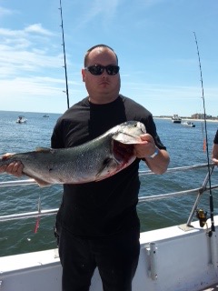 We had an EXCELLENT day of BLUEFISHING. They bit all day long and everybody had all the fish they wanted. Everything was caught on Run Off hammer jigs and crocs. The BLUES ranged between 3-12 lbs.