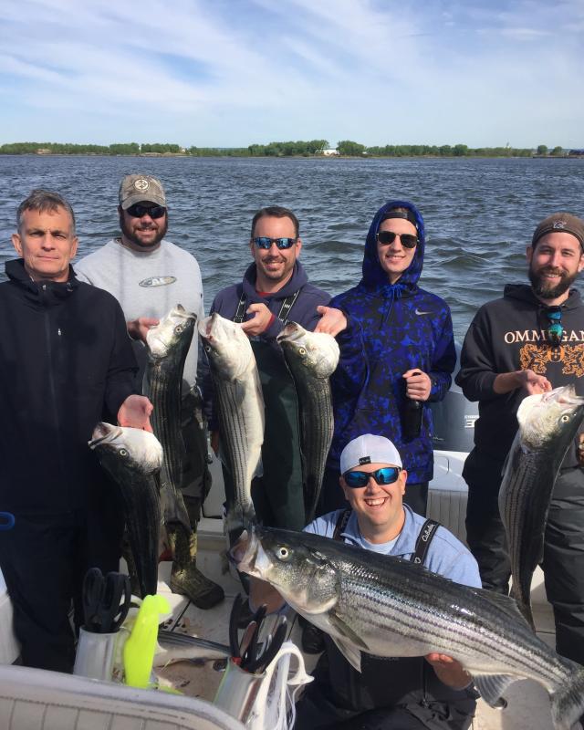 Mat, DJ. Went on the hunt and took a while to find Them, once we got dialed in we had a decent pick, Got our Limit and released few. Congrats to Mat And DJ on their first striper.