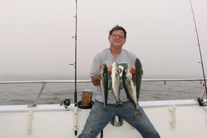 The fishing was better today than yesterday and we caught mostly BLUES in the 2 to 6 lb range. We had a few SEA BASS and a STRIPED BASS mixed in. Everything was on Run Off hammer jigs or crocs.