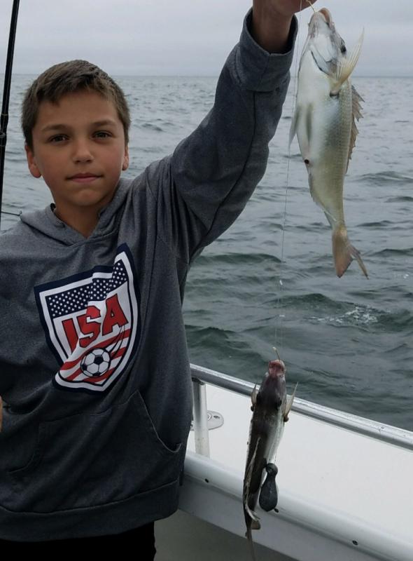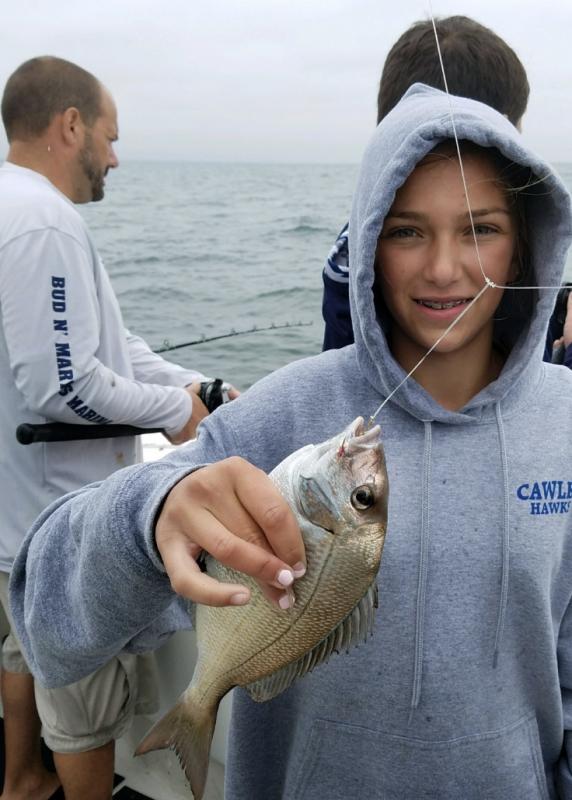 The kids beat on em. Today aboard the Down Deep we ran another 6 am Bottom trip for Tommy, friends and the big bunch of super anglers. Excellent fishing. Big Porgies flying over the rails and a little rain couldn't stop the crew from fishing. The bags of fillets could never match the big smiles for all aboard, the kids are hooked and will be talking about this trip for a long time. Come out, load up, hot fishing now. Thanks Tommy for sailing with us and all others who continue booking rough bottom Jumbo Ocean Fluke, Ling, Cod, winter Flounder & fall Jumbo Striped Bass, Tog & Seabass trips going forward at a rapid pace. Don't miss the next open boat trips -