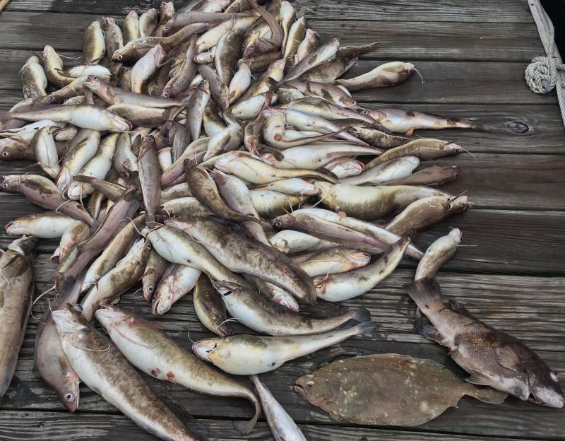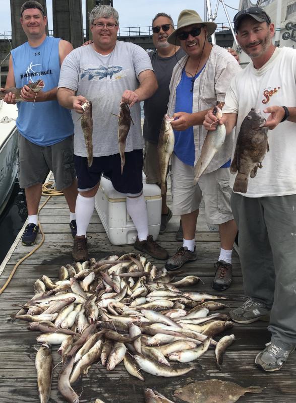Had Jason and his work colleagues out Friday for some ling. Trip was originally supposed to be during seabass season but kept getting postponed due to weather. It was a really nice day out today, but a little too nice and made for tough anchoring conditions. Had to bounce around a little bit. Few spots had some life and then would die off. One area we couldn't even touch because every inch of it was potted. Last wreck proved to be the best with drop and reel fishing until we headed in. Wound up with a keeper blackfish, a few whiting, a very large 4 spot(biggest I've ever seen) and 135 ling. Flounder were nowhere to be found today, a little odd, but the guys were able to stuff the cooler and had a good day.