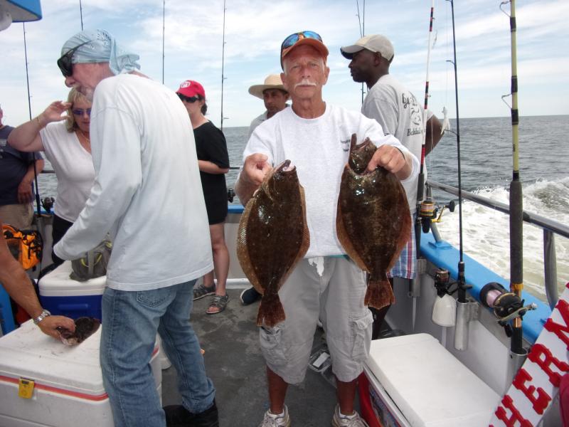 Saturday Scott Gallion & crew from Kenseal/AH Harris took the trip....Conditions were fine for drifting, so that's what we did. The guys slugged away all day on some very nice Fluke, Big Sea Bass and Trigger fish once again. Couple guys had their three fluke but most had the sea bass for the action all day. Today (Sunday) we had the largest gang in a long while aboard. Once everyone got acclimated, it was game on. Caught fish on every drift with the keepers being all very nice fish! Lenny took the pool and the $$$ with a beauty at 6.9 pounds. Some very nice Sea Bass in the mix, many guys with two keeper Fluke a couple with their three. Great day on the water, back at it tomorrow! RAIN NOT SUPPOSED TO COME TILL AFTER 2PM, DON'T PANIC!! NOTE: Please bring a small cooler with some ice guys and girls. I can not in my right mind give out buckets that turn into swill water and poach your fish by day's end. We cannot mark every Sea Bass, Porgy, Fluke or anything else we catch and keep them in our bait cooler. The crew has enough to do and trying to remember peoples marks when they forget, is just nuts. You don't need a 150 quart for what we are catching these days, but please, bring something!! CHARTERED FRIDAY & SATURDAY this week. Capt.Ron Last edited by 1captainron; 08-06-2017 at 06:33 PM.. |
