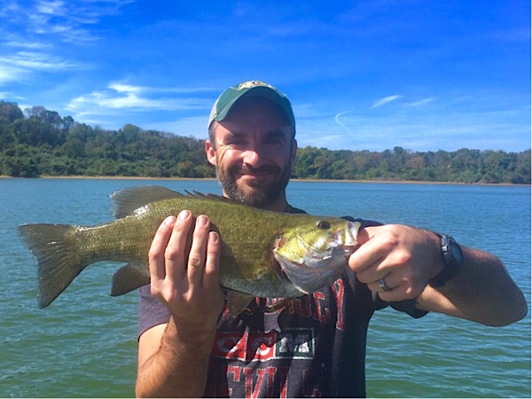 Funny story about the smallmouth - I had actually cast the jig and let it sink to the bottom before putting the rod in a holder while I fetched a fresh beer. My buddy and I decided to relocate at that point and it wasn't until I started up the trolling motor and we were headed out that I realized I hadn't reeled in the jig. I figured it was snagged on something because I heard the drag peeling. I turned off the motor and grabbed the rod to reel in my lure so we could be on our way and that is when I saw the line still moving despite the boat being stopped. My buddy and I had been fishing for hours at that point with nothing to show so we both were extremely pumped when I reeled in and he netted the beauty pictured. She taped out at about 18".