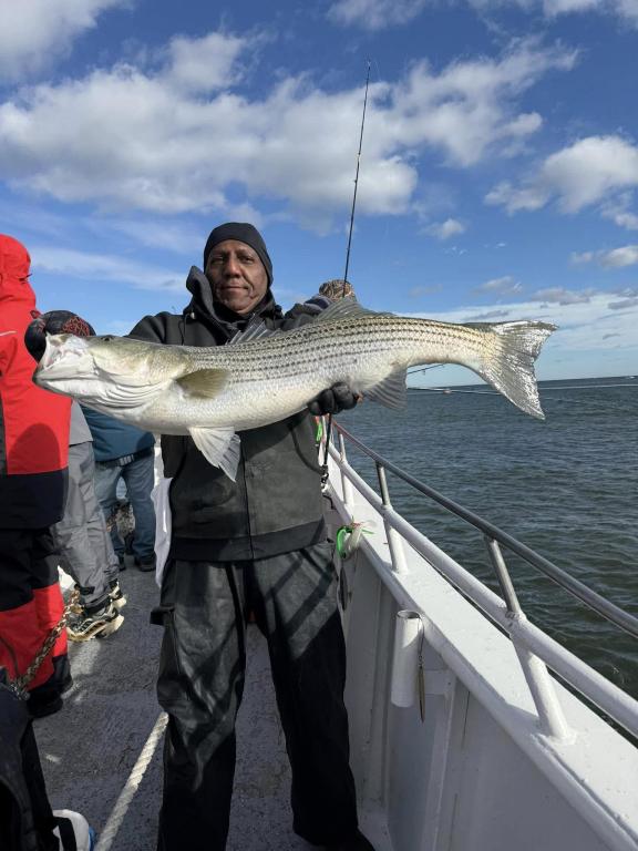 🎣‼️Another EXCELLENT day of STRIPER fishing today! We caught fish as soon as we stopped today and had PLENTY of readings STACKED at times! Lots of bunker blowing up and birds working today. Lots of anglers had their LIMIT plus more, high hook had about 10 fish caught today! Mostly KEEPER size fish and BONUS fish caught today with very few throwbacks! We stayed out slightly later today and left fish blowing up in white water action! NOW is the time to get in on all the action!! 🔥