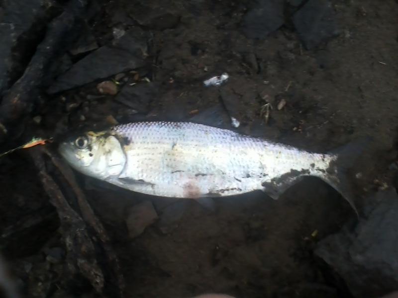 After seeing a couple different shad reports from the Delaware recently, I was pretty pumped up and wanted to try to get my first shad. Since I am at college, I did not have to much tackle to work with. Just my ultra light trout rod and some lures. I was checking the weather all day and saw about an hour gap with no rain so I figured I would go give it a shot. I drove to a couple places and found some nice deep water by the bank with some pretty fast current. I only had about 20 minutes to fish before the rain was gonna be back on top of me but I gave it a go with some small curly tail jigs and phoebes. On my third cast I hooked into something but with the light tackle and heavy current I had trouble getting it back to me. It jumped a couple times and then popped off but at least i got to see that it was a shad. I hooked into one more on the small jig that also got away and another on the phoebe that came off. As the rain began to fall and I was thinking it wasn't gonna happen today I got one on the phoebe and finally got him in. Not to much size to him, he was only about 14 inches but I sure was excited to get my first one. Can't wait to go back again with some egg or bullet weights to help get down the lure down. Thanks for the reports from all who posted them, they are what helped make my day today!
