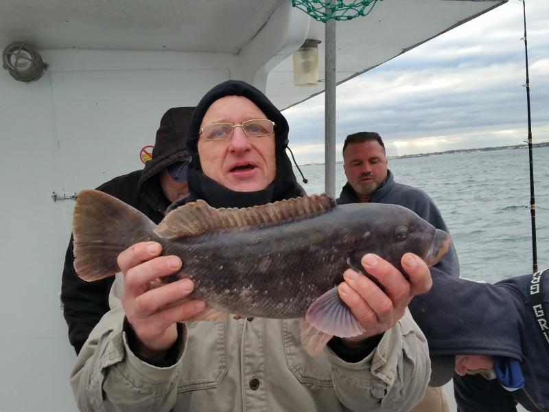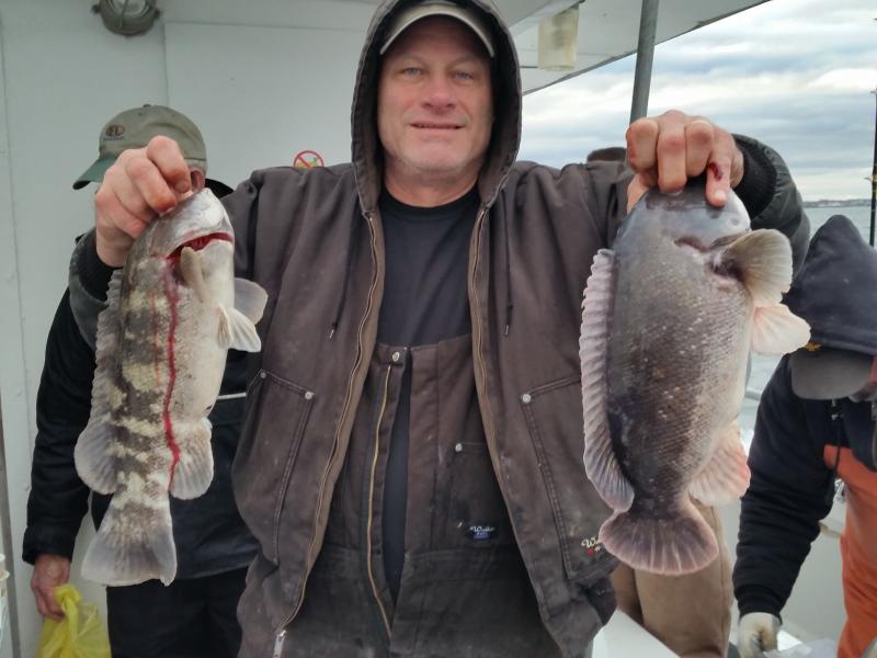 11-17-14 WE got out today with pretty nice conditions again,,flat calm for the most part...Fishing was slow for us at first...few fish nothing really happening,,,we ended up in an area where there was decent life,,some keepers but nothing exciting,,It was alot of fish it seemed like that went 14 inches...We picked through them for a while and ended up leaving to try and find better life for some bigger fish,,,WE ended up picking some nicer fish later in the day but overall it was not good for alot onboard,,,,Skip did have a limit of nice Togs and took home both pools....just couldnt get everyone dialed in like him..They were there though,,,gonna have to go back tomorrow and get em!!!!See ya in the morning,,we got hard west winds again like yesterday it should be good...See ya in the morning...pics